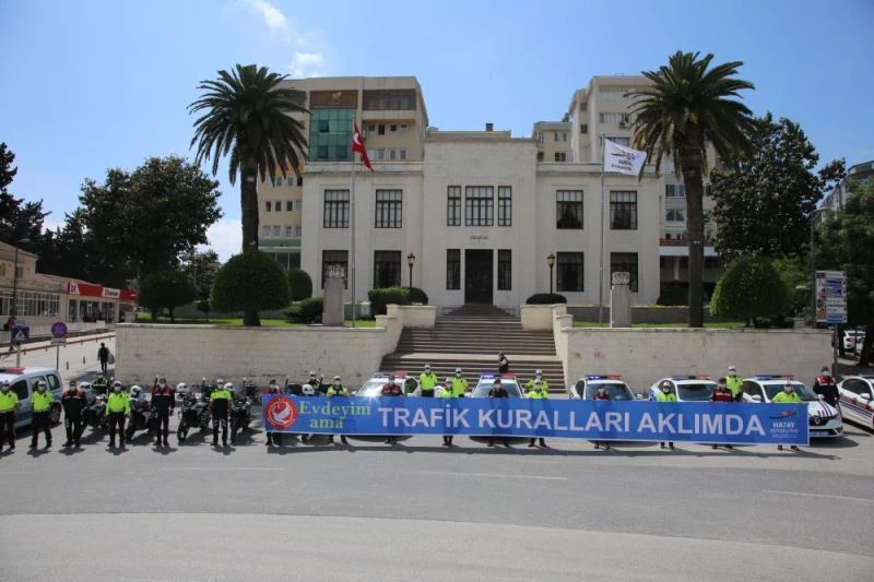 Emniyet ve jandarma trafik ekipleri, merkez Antakya ilçesi Cumhuriyet Meydani'nda sürücülerin trafik haftasini kutladi.