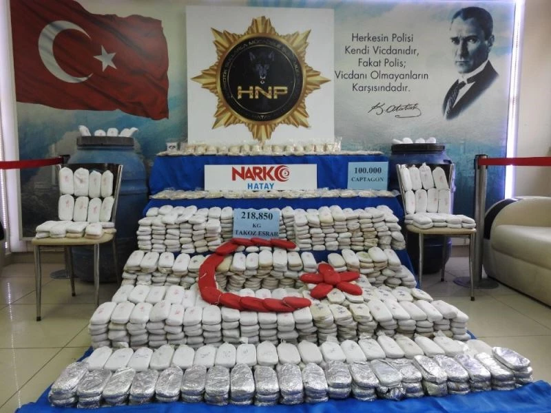 Hatay’da düzenlenen uyuşturucu operasyonunda 218 kilo esrar ve 100 bin adet Captagon hap ele geçirildi.