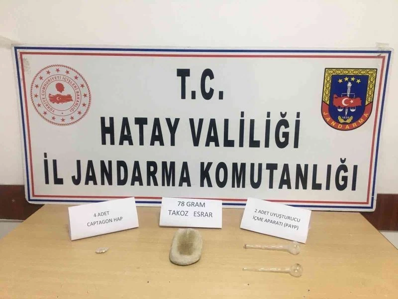 Hatay’ın merkezi ilçesi Antakya ve Yayladağı ilçelerinde 78 gram takoz esrar, 4 adet Captagon hap, 1 adet ruhsatsız av tüfeği, 1 adet kuru sıkı tabanca, 2 bin adet bandrolsüz makaron ve 2 adet uyuşturucu içme aparatı ele geçirildi.