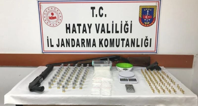Hatay İl Jandarma Komutanlığı Antakya İlçe Jandarma Komutanlığı kaçakçılıkla mücadele faaliyeti kapsamında çalışma gerçekleştirdi. Mustafa Kemal Üniversitesi kampüsü civarında uyuşturucu madde satışı yaptığı tespit edilen H.Y.Ç., H.T. ve M.T. isimli şahısların ikamet ettiği Zülüflühan Mahallesindeki evinde yapılan arama sonucunda 1 kilo 601 gram metamfetamin, 3 adet ruhsatsız tabanca, 2 adet av tüfeği, 162 adet fişek ve 5 adet hassas terazi ele geçirildi.