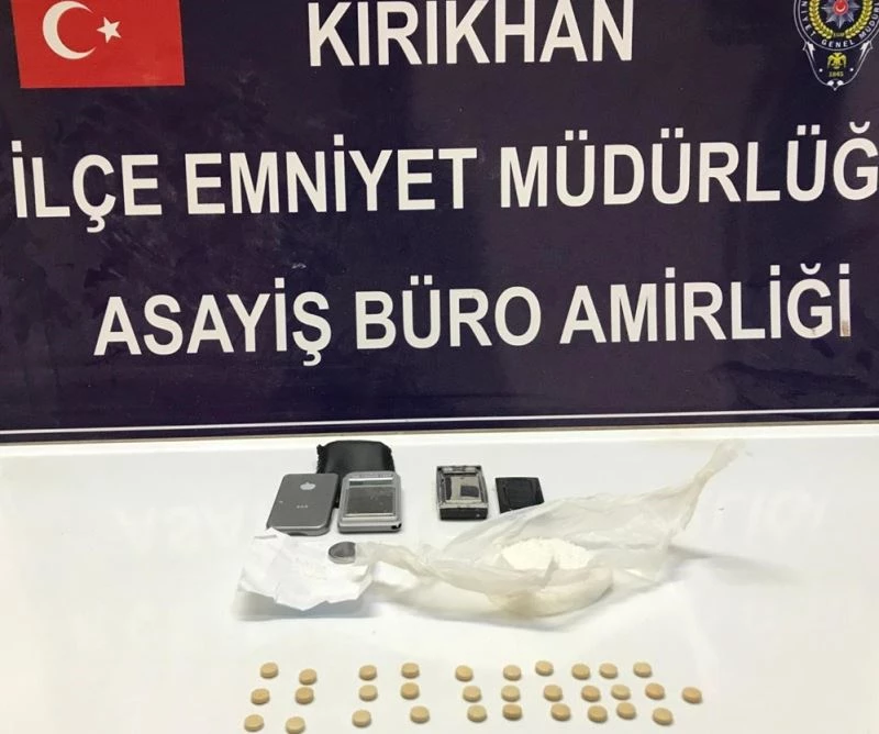 Ekipler, B.Y'nin sırt çantasında ve M.G'nin ikametinde yaptığı aramada 31 uyuşturucu etkili hap, 6,85 gram sentetik uyuşturucu ve 2 hassas terazi ele geçirdi.