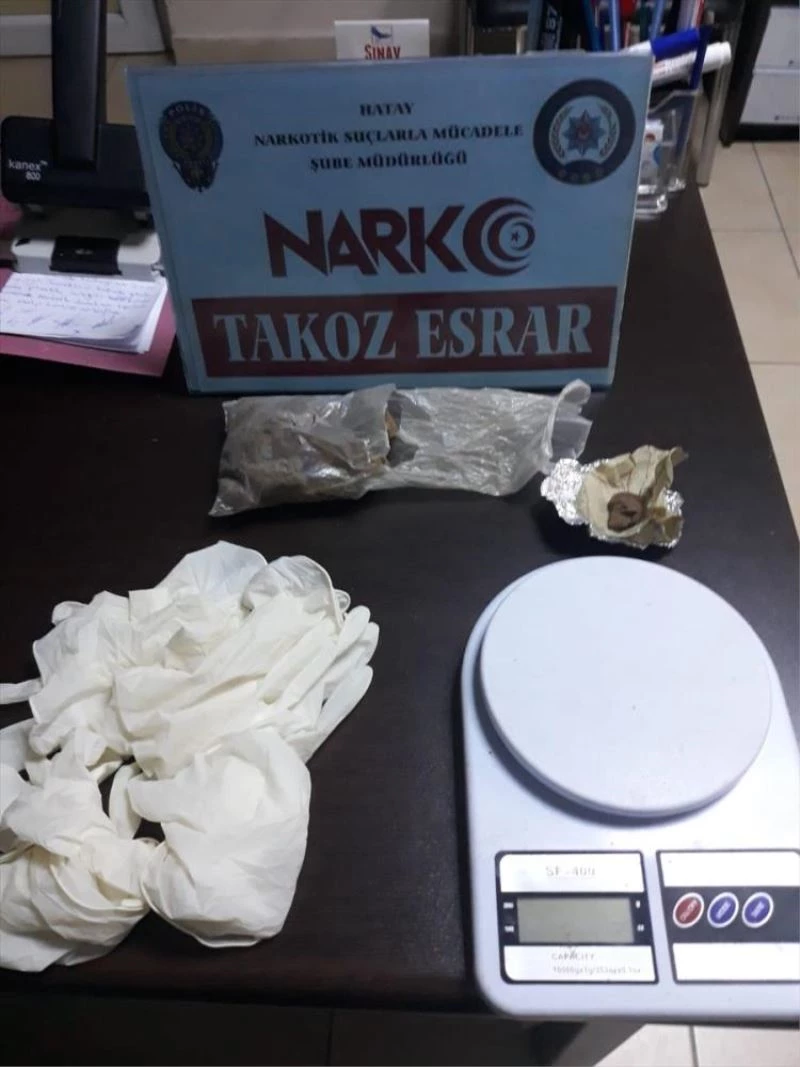 Ekipler, merkez Antakya ilçesinde A.S'ye ait evde yapilan aramada 125 gram takoz esrar, hassas terazi ve uyusturucu yapiminda kullanilan malzeme ele geçirdi.