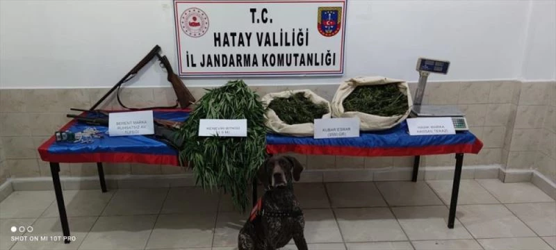 Özel eğitimli narkotik köpekleriyle adreslerde yapılan aramada 4 kilogram esrar ile 3 kök Hint keneviri ve 3 ruhsatsız av tüfeği tespit edildi.
