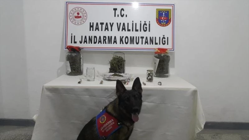 Narkotik arama köpeği "Öğle" ile yapılan aramada satışa hazır 12'si paket halinde ve 3 cam kavanoz içerisinde olmak üzere toplam 4 kilo 250 gram kubar esrar ele geçirildi.