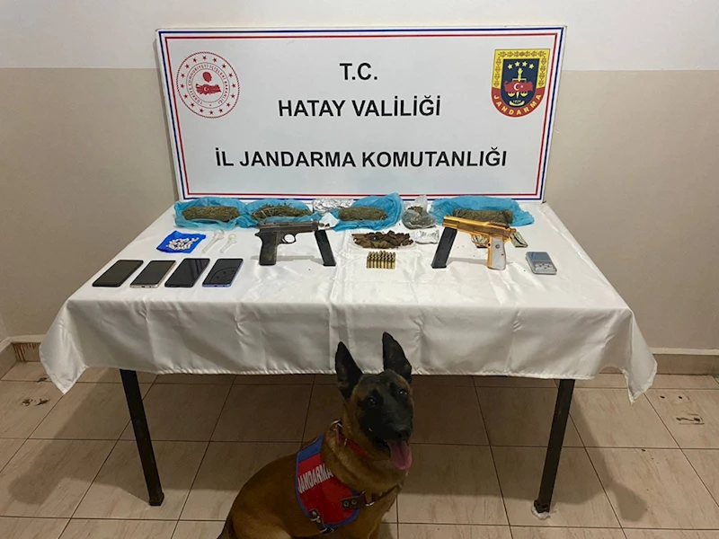 Ekiplerce durdurulan araçta yapılan aramada, 1 kilo 250 gram kubar esrar, 250 gram toz esrar, 5 gram metamfetamin, 92 sentetik uyuşturucu hap, 2 uyuşturucu kullanma aparatı, 1 hassas terazi, 2 tabanca, 61 tabanca fişeği ele geçirildi.