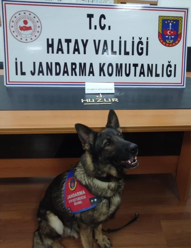 Narkotik dedektör köpeği "Öğle"nin de kullanıldığı aramada, 121 captagon hap ele geçirildi.