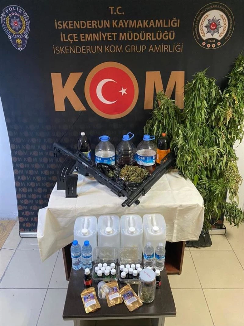 HATAY (AA) - Hatay'in Payas ilçesindeki operasyonda 55 litre sahte içki, 750 gram esrar ele geçirildi.