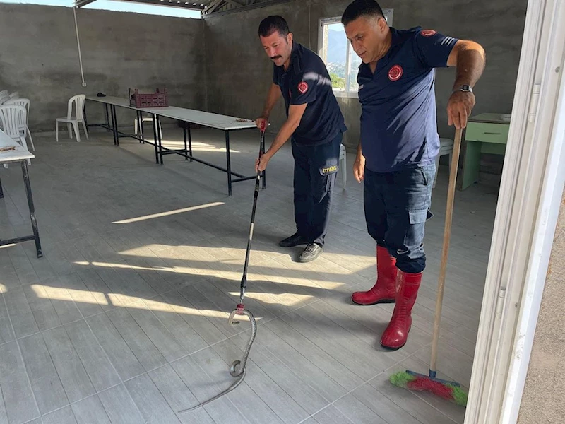 Hatay'da yemekhaneye giren yılanı itfaiye ekibi çıkarttı