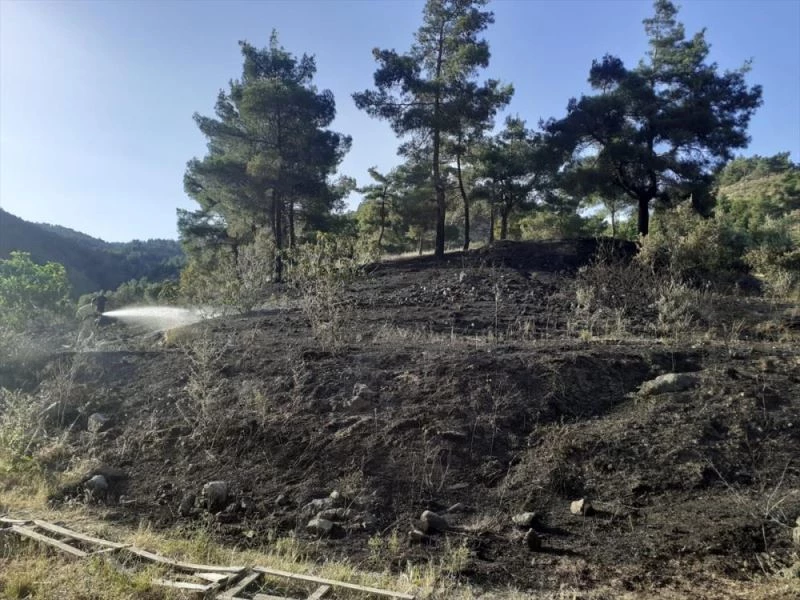 Bölgede sogutma çalismalari sürerken, yanginda 2 dekarlik zeytin bahçesi zarar gördü.