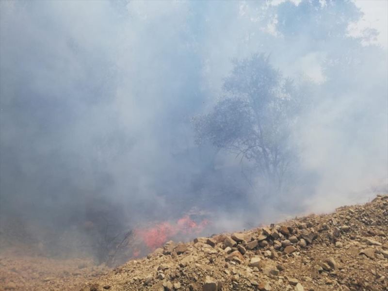 Subasi Mahallesi'ndeki zeytin bahçelerinin oldugu alanda, henüz belirlenemeyen bir nedenle yangin çikti.