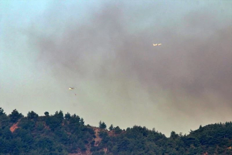 Havanin kararmasi nedeniyle ara verilen yangina helikopter ve uçakla havadan müdahale çalismalarina, sabah saatlerinde yeniden baslandi.