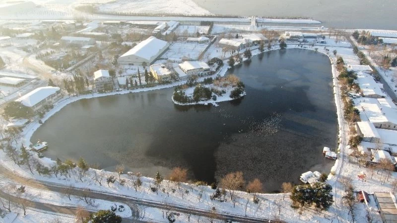 Kocaeli’de 5 gündür süren yoğun kar yağışının durması sonrasında hava sıcaklığı -4 derecelere kadar geriledi. Kar yağışının etkisini kaybetmesinin ardından düşen hava sıcaklığı beraberinde buzlanmayı da getirdi. -4 dereceye kadar inen sıcaklık sonrasında kent genelinde buz tutan kaldırımlarda vatandaşlar güçlükle yürümeye çalışırken, İzmit Fuar alanında bulunan kalp şeklindeki gölet ise buz tuttu. Buzlarla kaplanan göletin yüzeyinde martı ve göçmen kuşlar ise yiyecek aramaya başladı. Buz turan kalp şeklindeki İzmit Fuar Göletinin seyir zevki oluşturan görüntüsü ise havadan görüntülendi.