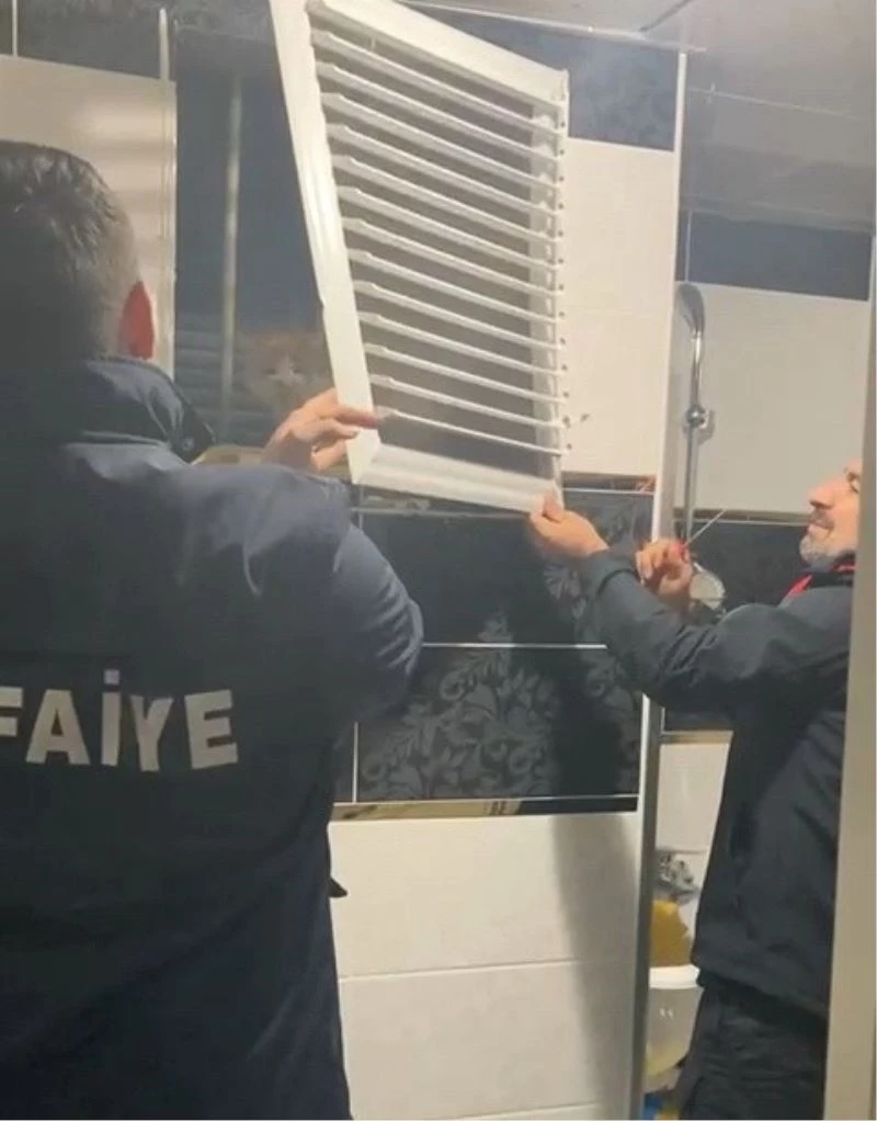 Adıyaman’da, bir binanın havalandırma boşluğuna düşen kedi, itfaiye ekiplerinin çalışmaları sonucu kurtarıldı.