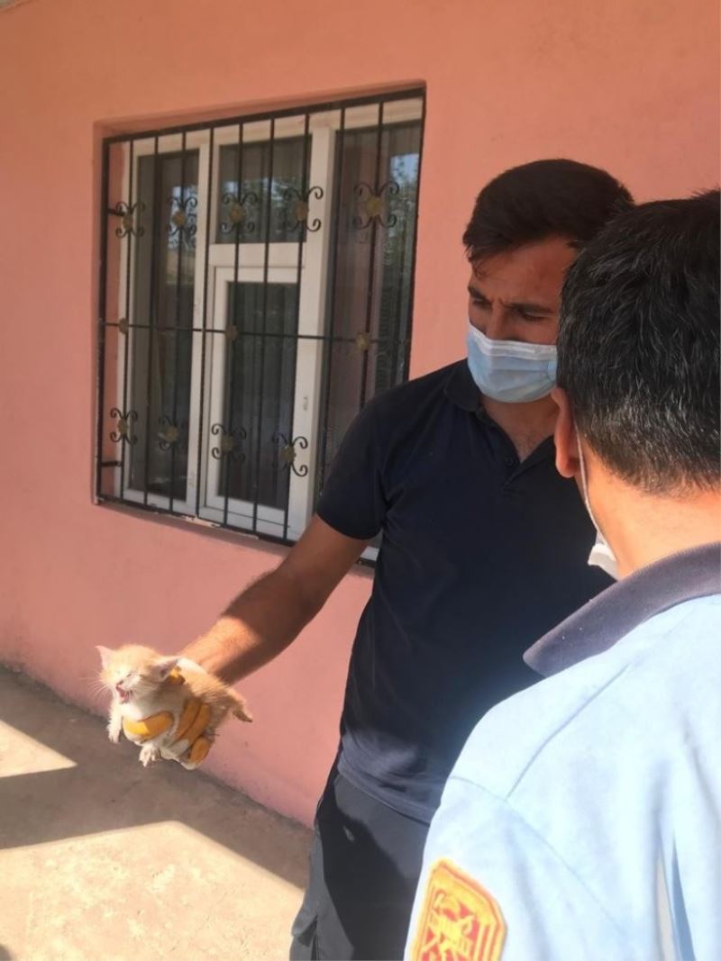 Van’ın merkez İpekyolu ilçesinde bir evin havalandırma boşluğuna düşen yavru kedi, itfaiye ekipleri tarafından uzun uğraşlar sonucunda kurtarıldı.
