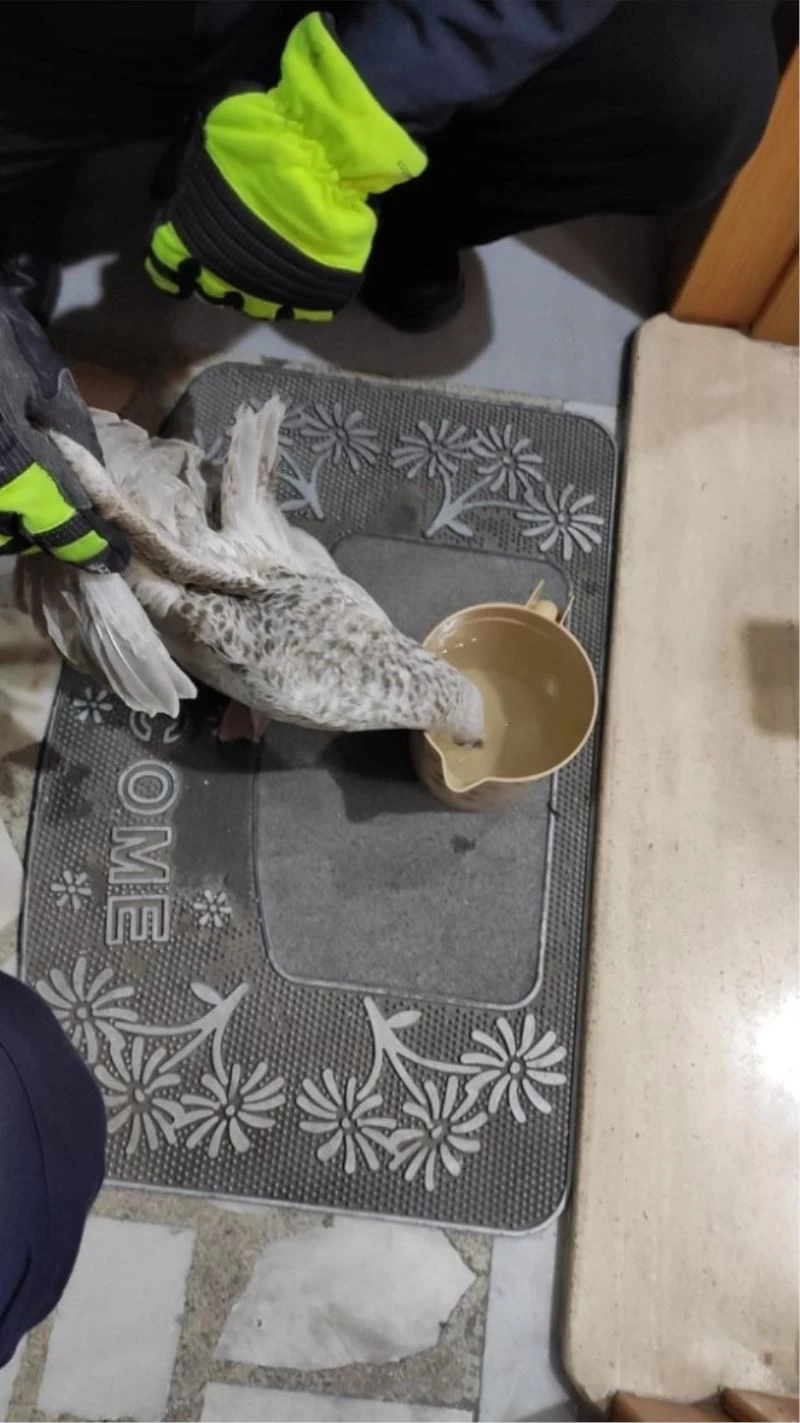 Havalandırma boşluğunda mahsur kalan martıyı itfaiye kurtardı