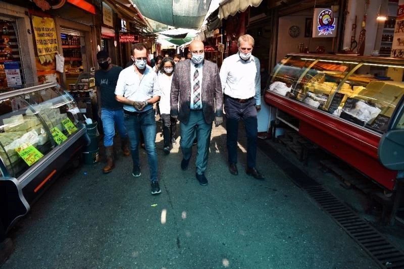 İzmir Büyükşehir Belediyesi Genel Sekreteri Dr. Buğra Gökçe ve Büyükşehir Belediyesi Genel Sekreter Yardımcısı Eser Atak, çalışmalar öncesi tarihi sokakta incelemelerde bulundu. İzmir Büyükşehir Belediye Başkanı Tunç Soyer’in Kemeraltı’nın iyileştirilmesi ve bu büyük kültür hazinesinin ayağa kaldırılması projelerine öncelik verdiğini anımsatan Gökçe, yapılacak çalışmalar hakkında bilgi verdi.