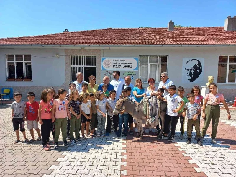 Balıkesir’in Havran ilçesinde, Almanya’da yaşayan gurbetçi vatandaş bir eşeğin heybesine yüklediği kırtasiye malzemeleri ve kitapları çocuklara dağıttı.