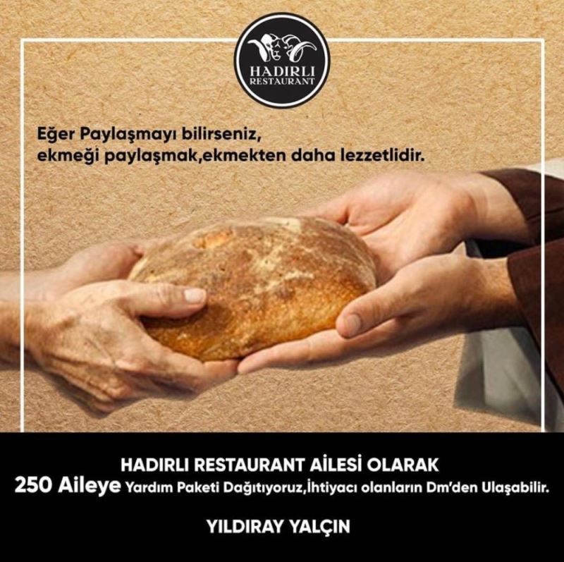 Menderes Hadırlı Restaurant’ın işletmecisi hayırsever iş adamı Yıldıray Yalçın, korona virüs döneminde ihtiyaç sahibi 250 aileye gıda kolisi yardımında bulundu.