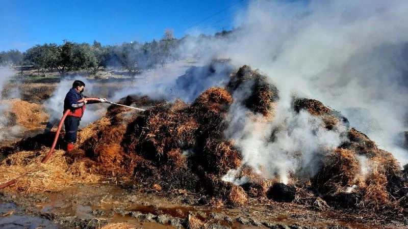 Öte yandan, itfaiye ekipleri tarafından soğutma çalışmaları devam ederken, zaman zaman alevlenen samanlar çiftlik dışına kamyonlarla taşınıyor.