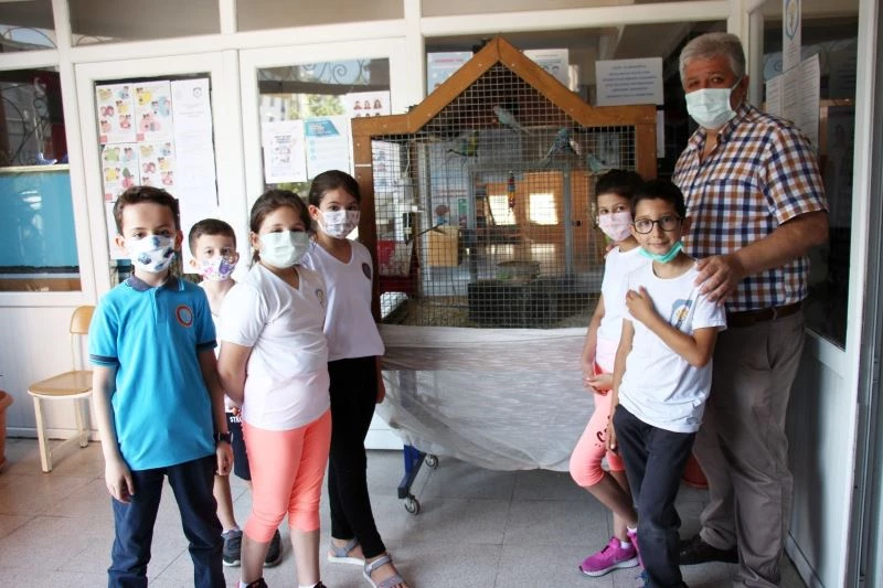 Aydın’ın Efeler ilçesindeki Yedieylül İlkokulu küçük bir hayvanat bahçesini andırırken, besleme yapan öğrencilere küçük yaşta hayvan sevgisi kazandırılıyor.