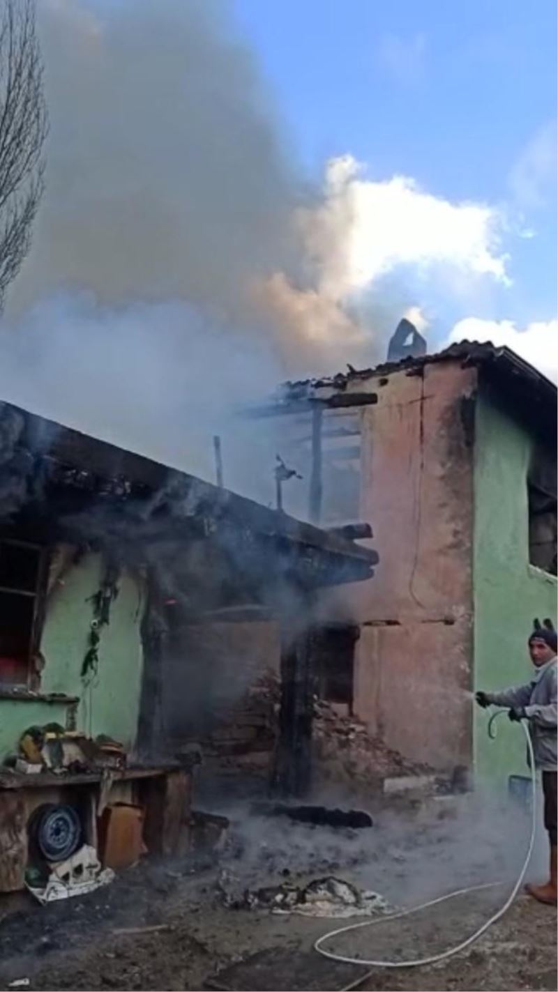 Büyükbaş hayvanların son anda kurtarıldığı yangında ev ve ahır kullanılamaz hale geldi.