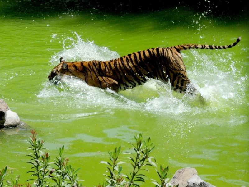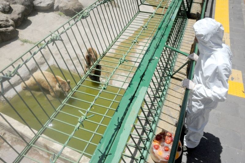 Mayıs aynın ortaları itibariyle başlayan ve 35 derecenin üzerine çıkan sıcaklıkların ardından hayvanat bahçesi sakinlerini serinletmek için çeşitli yöntemler yapılıyor.
