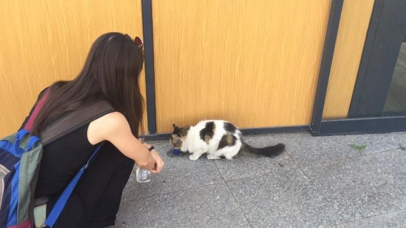 Diyarbakır’ın Yenişehir ilçesindeki bir alışveriş merkezinin kapısının önünde yorgun halde bulunan kediyi gören hayvansever, markete giderek su aldı. Daha sonra kedinin yanına gelen genç kız, beraberinde getirdiği suyu açıp kapağı ile kedinin su içmesini sağladı. Su ihtiyacını gideren hayvanla ilgilenen genç kızın tavrı, insanlığın ölmediğini bir kez daha gösterdi. Tüm bu anlar, çevrede bulunan bir vatandaş tarafından cep telefonu kamerasına kaydedildi.