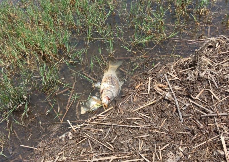 Elazığ’ın Sivrice ilçesinde Hazar Gölünde telef olan bazı balıklar kıyıya vurdu.