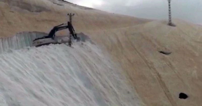 HAKKARİ (İHA) – Hakkari’nin Yüksekova ilçesindeki Göllerbaşı bölgesinde haziran ayına rağmen kalınlığı 2 metreyi bulan kar yığınları temizleniyor.