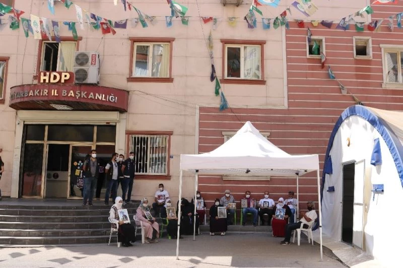 Çocuklarının terör örgütü PKK mensupları tarafından dağa kaçırıldığı iddiasıyla HDP Diyarbakır İl Başkanlığı önünde oturma eylemi başlatan ailelerin evlat nöbeti sürüyor.