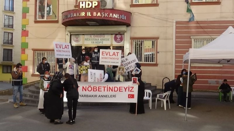 Diyarbakır’da çocukları terör örgütü PKK mensupları tarafından dağa kaçırılan ailelerin HDP il binası önündeki evlat nöbeti eylemi 442’nci gününde de devam ediyor.