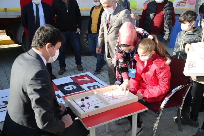 Aile, Çalışma ve Sosyal Hizmetler Bakanlığı ile Çocuk Oyunları ve Spor Kulüpleri Federasyonu iş birliğiyle hazırlanan ’Hediye Karavanı’ tırının 13. durağı Mardin oldu.