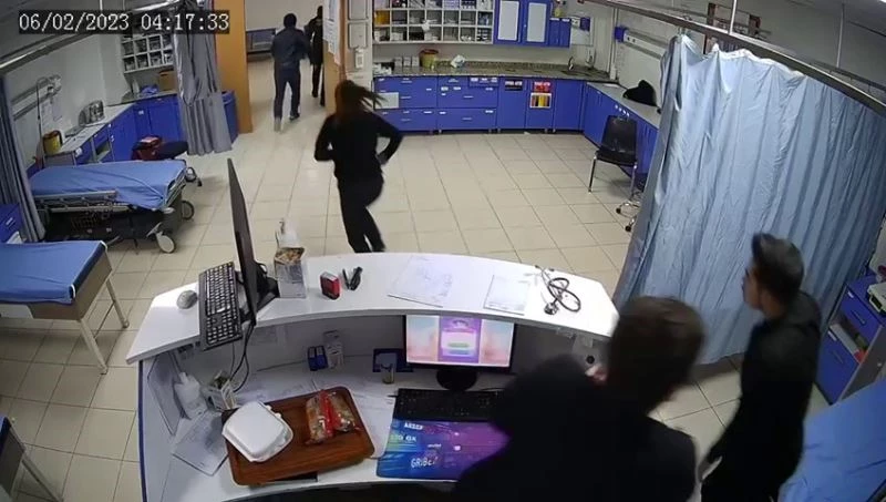 Sosyal medyada da gündem olan görüntülerde sarsıntı devam ederken Şeyma hemşirenin, dış kapının aksine servise koşarak kucakladığı çocuğu bina dışına çıkarması yer aldı.