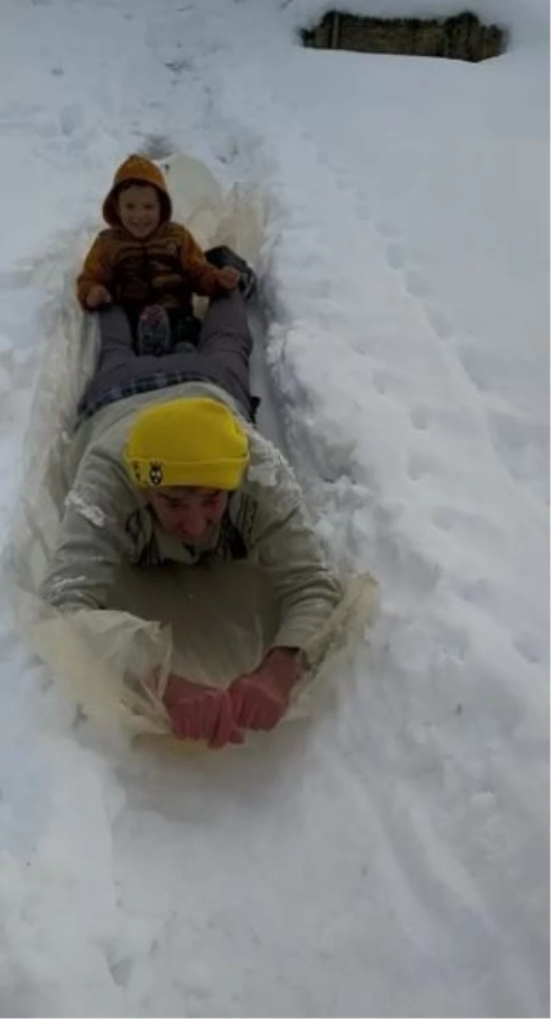 Borçka ilçesi Güreşen köyünde kış şartları ağır geçince bölge halkı hem karla mücadele ediyor, hem de doyasıya eğleniyor. Yoğun kar yağışı nedeniyle Güreşen köyü Kurşunlu mahallesi sakinleri evlerinde mahsur kaldı. Bölge halkından İsmail İslam isimli vatandaş, evinin etrafı karla kaplanınca yolu açmak için farklı bir yöntem kullandı. Naylon parçasına boyu boyuna uzanan İsmail İslam, torunu 5 yaşındaki Yusuf İslam’ı da arkasına alarak hem onu eğlendirdi, hem de evinin yolu açtı.