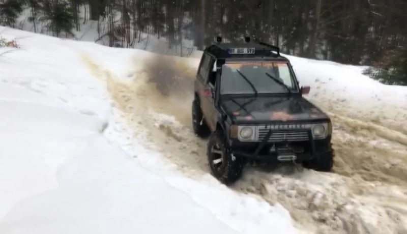 DÜZCE(İHA) –Düzce’nin yüksek kesimlerde zaman zaman etkili olan kar yağışı sonrasında Offroad araçları olanlar kar safarisi yaptı. Safari esnasında yolda kalan araçları kurtarmak yine kendilerine kaldı. Hem offroad yaparak adrenalin yaşadılar hem de yardımlaştılar.