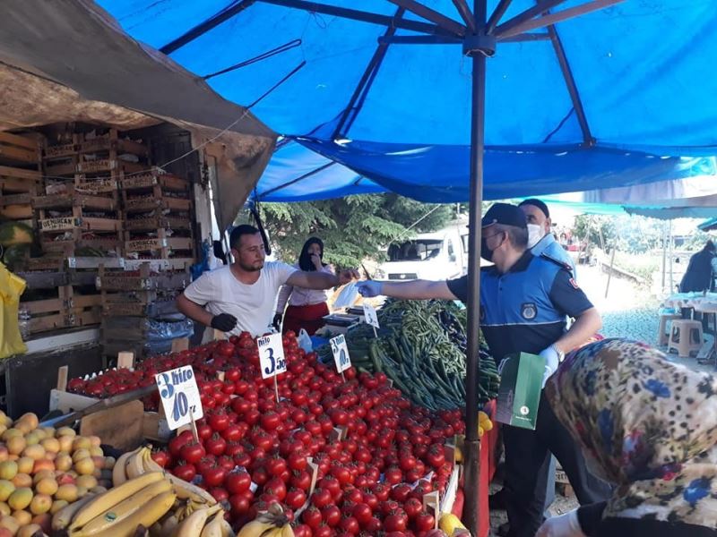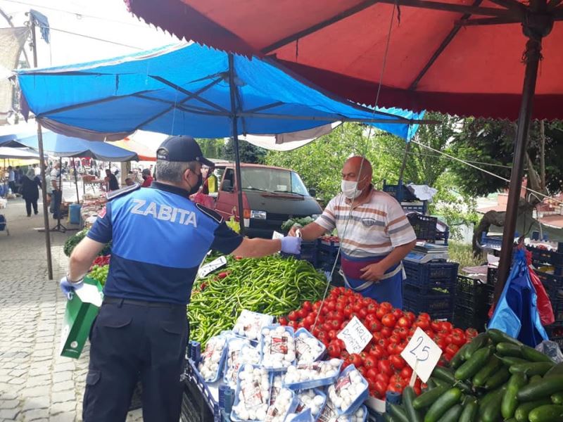 Korona virüs salgını sonrasında halkın en büyük ihtiyaçlarından birisi olan maske için Düzce Belediyesi Kültür Müdürlüğü bünyesinde bulunan Meslek Edindirme Kursları koordinatörlüğünde oluşturulan Maske dikim atölyelerinde dikim çalışmaları bir yandan devam ederken, bir yandan da dağıtım çalışmaları Zabıta Müdürlüğü ekipleri tarafından devam ediyor. Düzce Belediyesi Zabıta Müdürlüğü ekipleri Konuralp pazarında uzun bir süre sonra tezgah açan esnaflara uyarılarda bulunurken, bir yanda da maske dağıtımı gerçekleştirdi.