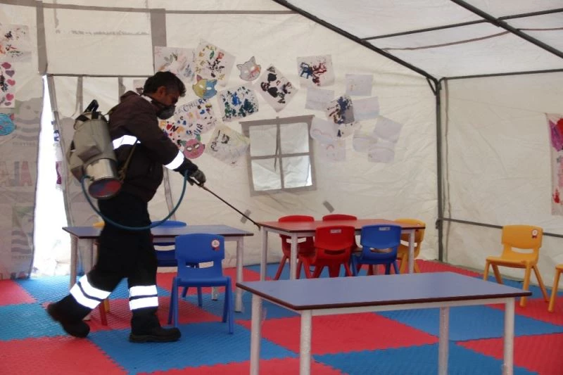 İzmir’de meydana gelen depremin ardından evleri yıkılan ya da hasar gören vatandaşlar, çadırlarda kalmaya başladı. Depremin en çok hasara uğrattığı Bayraklı ilçesinin korona virüs haritası adeta kırmızıya bürünürken, çadırlarda kalan vatandaşların korona virüse yakalanmaması için yoğun çaba sarf ediliyor. İzmir Büyükşehir Belediyesi ekipleri, çadırları ve ortak tuvalet ve duş kabinlerini dezenfekte ederken, AFAD tarafından da çadır alanları girişinde ateş ölçümü, dezenfektan sıkımı ve maske dağıtımı yapılıyor.