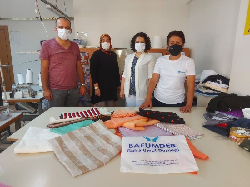 Bafra ilçesinde faaliyet gösteren Umut Derneği maske dikim çalışmalarını yürüten Halk Eğitim Merkezine kumaş desteğinde bulundu. Müdür Yardımcıları Özlem Ölmez, "Pandemi sürecinde maske üretimi gerçekleştiren Halk Eğitim Merkezine bizimde bir katkımız olsun istedik. Kumaş desteklerimizin devamı gelecektir" dedi.