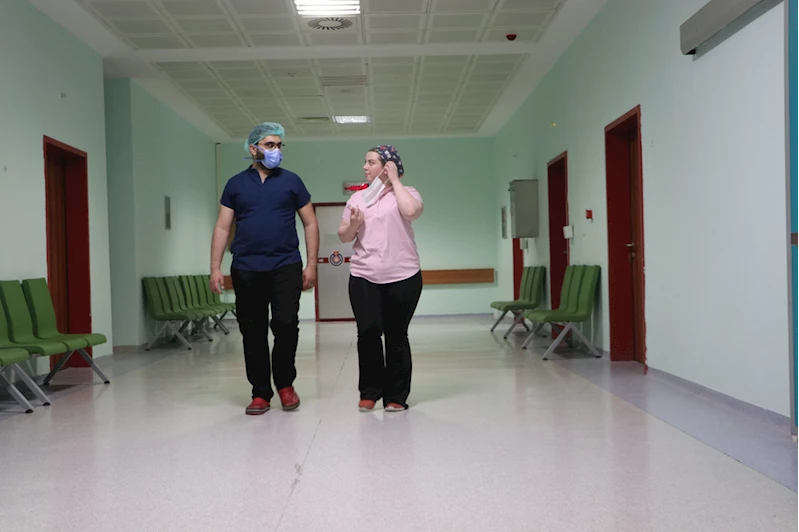 Ameliyathane hemşiresi olarak görev yapan Çolak çifti, her sabah birlikte evden çıkıp hastaneye giderek hastaların tedavi sürecine destek oluyor.