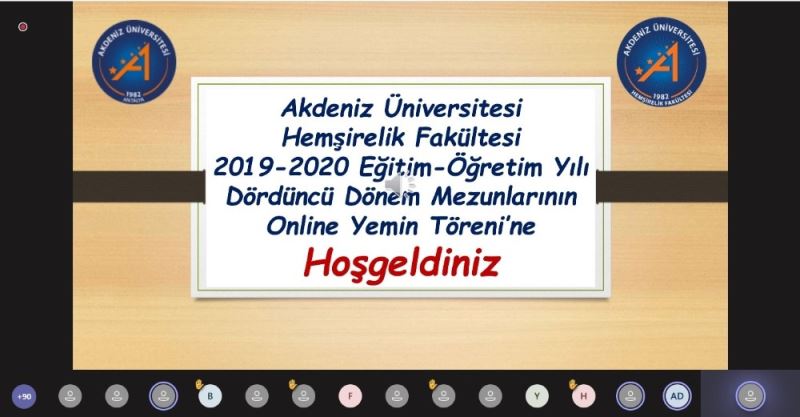 Küresel salgın nedeniyle uzaktan eğitim yoluyla eğitimlerini tamamlayan Akdeniz Üniversitesi Hemşirelik Fakültesi öğrencileri, Akdeniz Üniversitesi Rektörü Prof. Dr. Mustafa Ünal, Rektör Yardımcısı Prof. Dr. Erol Gürpınar, Hemşirelik Fakültesi Dekanı Prof. Dr. Sebahat Gözüm, dekan yardımcıları, öğretim üyeleri ve mezun öğrencilerin katıldığı online tören, İstiklal Marşı’nın okunmasıyla başladı.