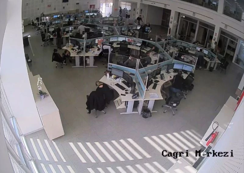 İzmir’de meydana gelen 6.6 şiddetindeki deprem anında 112 çağrı merkezinde çalışanların o anları güvenlik kamerasına yansıdı. Depremin en çok hissedildiği bölgelerden biri olan Bornova İlçesi Doğanlar mahallesinde bulunan çağrı merkezinde çalışanlar demrem anında bir çoğu çalıştıkları masaların altına girerek kendilerini korudu. Ardından çalışmaya devam eden 112 çağrı merkezi çalışanları hiç susmayan telefonları bakmaya başladı. Depremden sonra gün boyu 24 bin çağrı alan 112 acil çağrı merkezi çalışanları 48 saat boyunca aralıksız çalışmalara devam etti. şimdiye kadar 1713 artçı sarsıntıya aldırmadan çalışan 112 çalışanlarının o anaları saniye saniye güvenlik kamerasına yansıdı.
