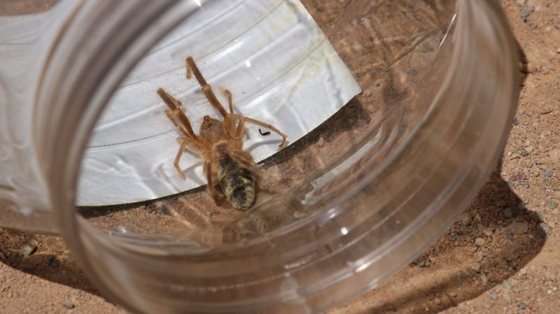 Sivas’ta site bahçesinde görülen ve halk arasında et yiyen örümcek olarak bilinen ’Sarı Kız’ örümceği vatandaşlarda paniğe neden oluyor.