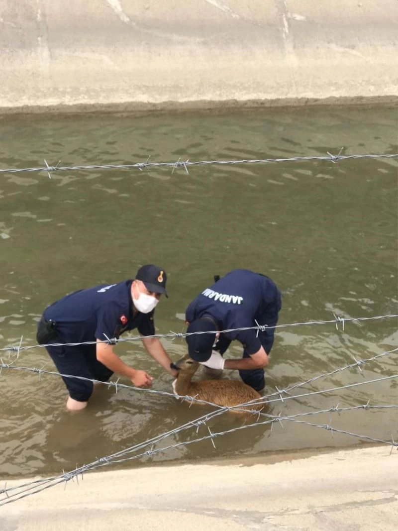 Kastamonu’nun Araç ilçesinde HES kanalına düşen karacayı jandarma ekipleri kurtardı.