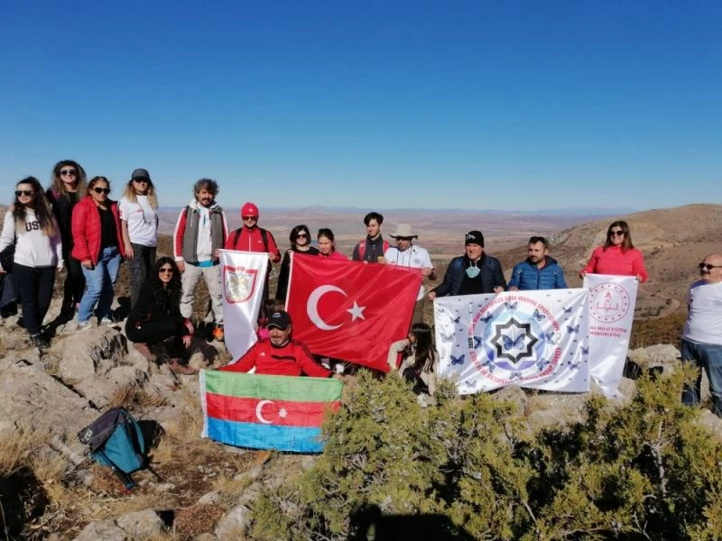 Sivas İl Milli Eğitim Müdürlüğü Mavi Kelebekler Doğa Yürüyüş Grubu üyeleri, Ertuğrul Gazi’nin Moğol komutanı Çarmagon Noyan’la savaştığı rivayet edilen Hevük Kalesi’ne hayran kaldı.