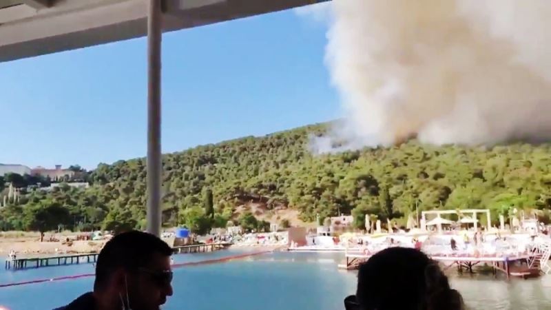 İstanbul Heybeliada’da çıkan yangında ormanlık alan alevlere teslim olurken plajda vatandaşların top oynamaya devam etmesi dikkatlerden kaçmadı.