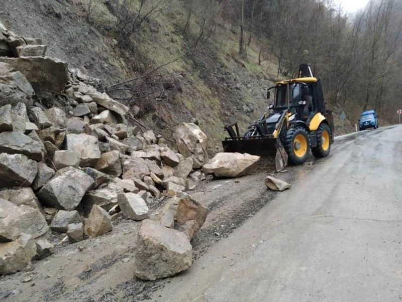 Bartın’ın Hasankadı beldesine ulaşım sağlayan yolda heyelan meydana geldi. Heyelan nedeniyle dev kayalar yolu kapatırken yapılan çalışma ile yol yeniden ulaşıma açıldı.