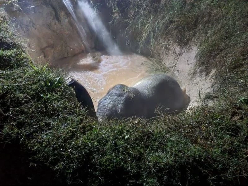 Hindistan’ın Batı Bengal eyaletinde bir fil çukura düştü. Kurtarma ekipleri, mahsur kalan fili çıkarmak için çukuru suyla doldurdu. Ekipler, 3 saat süren kurtarma operasyonunun ardından fili çıkarmayı başardı.