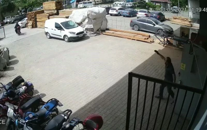 Bursa’nın İnegöl ilçesinde mobilya fabrikasının bahçesindeki motosikleti çalmaya çalışan 3 hırsızlık şüphelisi, fabrikanın işçisi tarafından engellendi. O anlar güvenlik kamerasına yansıdı