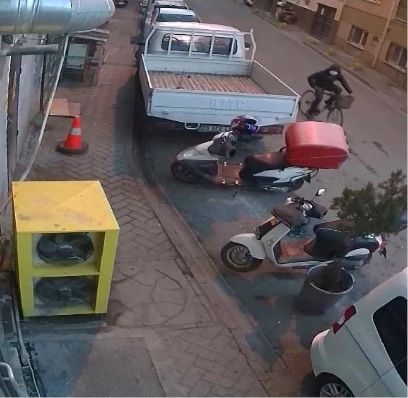 Olay, sokağa çıka kısıtlamasının uygulandığı 2 Ocak Cumartesi günü Odunpazarı ilçesine bağlı Yenibağlar Mahallesi Karargahönü Sokak’ta yaşandı. Bir restoranda çalışan kurye anahtarını üzerinde bıraktığı motosikleti park etti. Kuryenin iş yerine girmesiyle sokaktan bisikletle geçen kimliği belirsiz şahıs, üzerinde anahtarıyla park edilen motosikleti fark etti. Etrafı kontrol ettikten sonra bisikletini bırakan şahıs, saniyeler içerisinde motosikleti çaldı. Motosikletin çalındığını anlayan kurye durumu polis ekiplerine bildirdi.