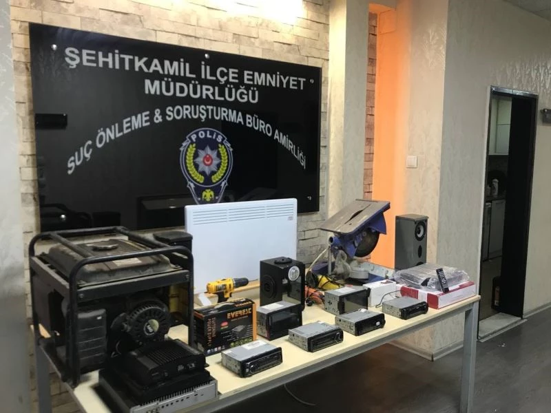 Gaziantep Emniyet Müdürlüğü’ne bağlı Şehitkamil İlçe Emniyet Müdürlüğü ekipleri, Hürriyet Mahallesi’nde bir adrese baskın yaptı. Baskın yapılan adreste hırsızlık malı çalıntı 7 adet oto teybi ve sistemleri, hızar makinası, kompresör, çok sayıda matkap, spiral, şarjlı cihaz ele geçirildi. Ele geçirilen malzemelerle ilgili M.D. isimli şüpheli şahıs yakalandı.